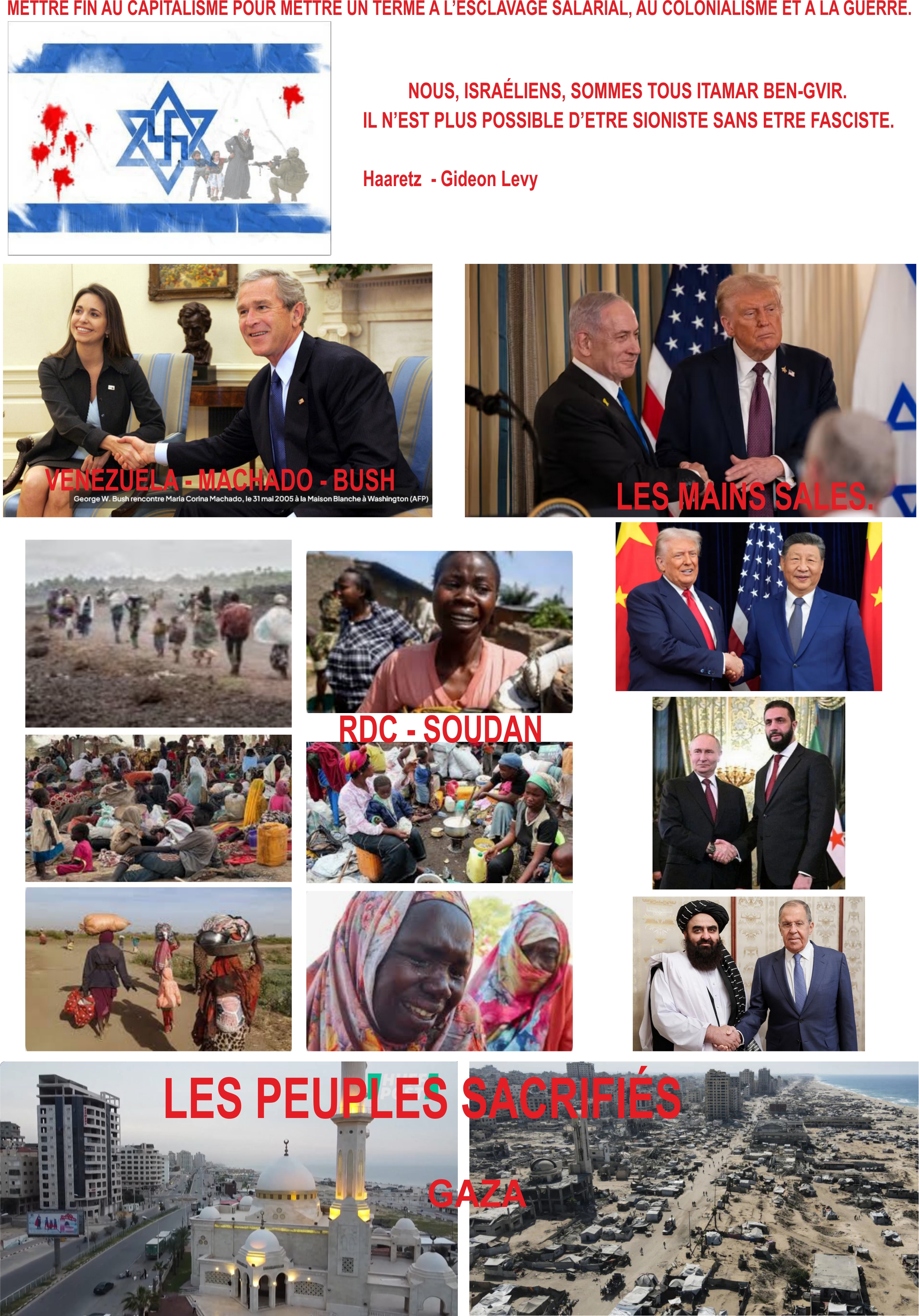 Le 1er octobre 2025 Aujourd'hui ici au Tamil Nadu, pour les hindous, c'est Sarasvatî puja, une fête nationale, un jour férié pour certains mais pas tous hélas, les écoles sont fermées. Un jour comme un autre pour moi, pas pour ma compagne croyante et pratiquante, sans m'imposer quoi que ce soit, on s'entend très bien, chacun son truc, elle son culte, moi, la lutte de classe des esclaves que nous sommes. Il faut extraire le mal à la racine. Taxer les riches, on n'en a rien à foutre, il faut les supprimer ! Négocier avec les sionistes, il n'y a rien à négocier avec eux, car ils sont l'incarnation de la négation de la Palestine, il faut supprimer Israël ! L'exploitation est à l'origine de l'oppression, de la répression, des discriminations, de toutes les injustices, du chômage, de la pauvreté et de la précarité, des famines et des guerres, bref, des maux de tous les peuples, alors il faut la supprimer ! Ce mot d'ordre ne devrait-il pas figurer dans notre propagande ? L'abolition de l'exploitation de l'homme par l'homme, qui y est opposé, n'est pas ou ne pas être un humaniste, c'est aussi pourquoi il n'y a pas d'idéal humaniste plus élevé que celui du communisme, pourquoi ils haïssent tant le communisme synonyme de liberté finalement, alors que leur système économique ne peut le revendiquer. Découvrez le communisme dans Marx et Engels, pas ailleurs surtout, et vous serez sur la voie de la libération. On peut en discuter si vous voulez. Bien que je sois à nouveau malade, on a bien bossé au mois de septembre, on n'a pas baissé les bras, si je lève le pied, ce sera à cause de mon état de santé. J'aurais de la peine à abandonner nos amis palestiniens, j'y pense en permanence, c'est une véritable torture, non pas parce qu'on serait réduit à l'impuissance, mais parce que notre cause n'avance pas. Nous sommes entourés de sordides opportunistes, on est les otages des socialistes révisionnistes, je ne parle même pas des sociaux-démocrates et des staliniens, leurs discours ou plutôt leur double discours puent la conciliation, la collaboration, la trahison. Il n'y a pas que les Etats-Unis ou la Grande-Bretagne qui demeureraient des puissances coloniales ou impérialistes, la France également. Les peuples colonisés comme les Palestiniens ne seront jamais réellement indépendants, aussi longtemps que ces régimes dictatoriaux occidentaux n'auront pas été renversés, or le mouvement ouvrier de ces pays-là n'en prend pas vraiment le chemin. Je viens de lire le discours que Nathalie Arthaud a prononcé au meeting de Lutte ouvrière le 27 septembre 2025, s'il est admirable à bien des égards, il comporte de nombreuses faiblesses ou failles empruntées au discours officiel qu'elle vilipende par ailleurs quand il vient d'autres partis. C'est regrettable et révélateur d'une confusion que je mettrai sur le compte d'un dogmatisme mal dégrossi ou récurrent, par exemple sur la Libye, la Syrie ou l'Irak, ou encore toutes les mystifications mondiales (Covid, climat, genre, etc.) orchestrées par les idéologues de Davos ou Bilderberg ou de la Trilatérale, Arthaud tombe à pieds joints dedans reprenant en partie leurs discours, ainsi, d'un coup, car il n'en faut pas plus à notre époque, elle perd toute crédibilité, c'est dommage ! Pour ne donner qu'un exemple. La Libye de Kadhafi était le pays le plus social de la planète, et je pèse mes mots, ce qu'ils ne diront jamais, la plupart des gens l'ignorent encore, j'ai publié les documents qui le prouvaient, alors traiter Kadhafi de dictateur au moment même où l'OTAN le bombardait et le traitait de la même manière, c'était apporter son soutien à l'OTAN. C'est ce que fit en chœur l'ensemble de l'extrême gauche en France (pas seulement) se déshonorant à jamais. Arthaud cite les évènements qui ont eu lieu au Bangladesh et au Népal, ignorant qu'ils ont été pilotés par ceux qui ont fomenté toutes les "révolutions de couleurs ou des fleurs" ou le "Printemps Arabe", les mêmes qui ont détruit l'Afghanistan, la Libye, l'Irak, la Syrie, Gaza, etc.., elle est obligée de fournir la même version des faits, de s'enfoncer dans le déni ou le mensonge, sinon elle devrait admettre qu'elle s'était fourvoyée lors des "révolutions de couleurs ou des fleurs" ou le "Printemps Arabe", or, une si grande dirigeante ne peut pas se tromper à ce point-là de façon répétée. Apparemment, elle ne s'est jamais posée la question de savoir, pourquoi les mêmes scénarios se répétaient pratiquement à l'identique dans des dizaines de pays très différents (de l'Ukraine à Sri Lanka en passant par la Tunisie) depuis le début des années 90, pourquoi Soros et Cie instrumentalisaient la jeunesse, si ce n'était pour faire tomber des chefs d'Etat ou des gouvernements pour mettre en place des dirigeants à leur solde, ce qui chaque fois a été prouvé. Par la suite, les manifestants n'eurent pas gain de cause, mais par miracle les émeutes cessèrent, et la vie reprit son cours comme si rien ne s'était passé. On a affaire à des gens peu scrupuleux envers la vérité. Dès qu'il y a trois tondus et un pelé qui manifestent, peu importe pour quoi ou leur orientation politique, il faut faire croire que le peuple est prêt pour en découdre ou pour la révolution, ce n'est que pure manipulation ou illusion pour tromper les militants et qu'ils gardent espoir. Si ces militants étaient devenus marxistes, ils n'en seraient pas là, mais ils n'ont jamais reçu une formation pour le devenir, cela ne figurait au programme d'aucun parti ouvrier, maîtriser le matérialisme dialectique, vous n'y pensez pas sérieusement, car c'était leur garantir de parvenir à penser par eux-mêmes à brève échéance, vous imaginez le danger pour des dirigeants qui sont des imposteurs pour la plupart, ils auraient été capables de les démasquer et de les virer ! Prononcez mon nom au PT ou au POI devant un dirigeant, prenez garde,